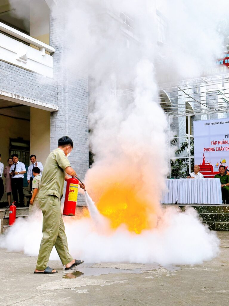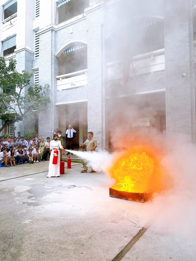 – Được thực hành sử dụng bình chữa cháy.